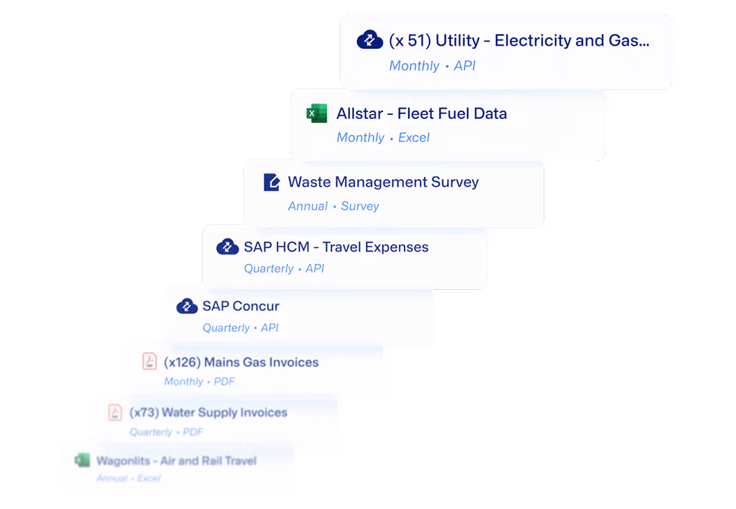 Minimum ingests data from APIs, spreadsheets, PDFs, surveys and system extracts. The goal is to enable firms' to collect the most specific data possible whether at site-level, asset-level or supplier-level information and reduce dependence on averages and estimates.